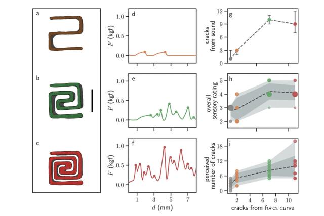 科學家們以巧克力為模型材料,首先創建和控制了斷裂的各向異性和裂縫的數量,并證明這些特性能夠在口感體驗中被捕捉到。從而進一步利用
