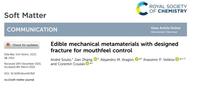 探索“機械超材料”“口感體驗”能夠控制食物的味道、質地和整體感官體驗,對于使它們具有吸引力至關重要。正因為追求“口感體驗佳”,人們在日常生活中往往會主動吃日常,如湯、酸奶和餅干,而不太會更主動地吃更健康或無肉的食物的問題(這就是“口感不佳”)。 控制感覺體驗是設計食品的一個重要課題,而且使用3D打印是直接制造食品質地的一個有前途的途徑,但使用機械超材料來調節口感的做法此前還沒有被研究過。